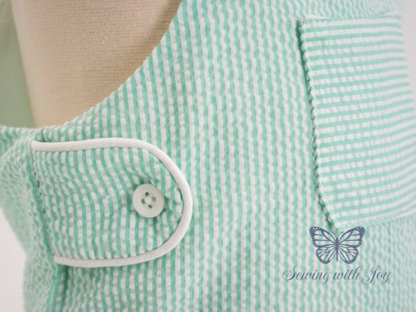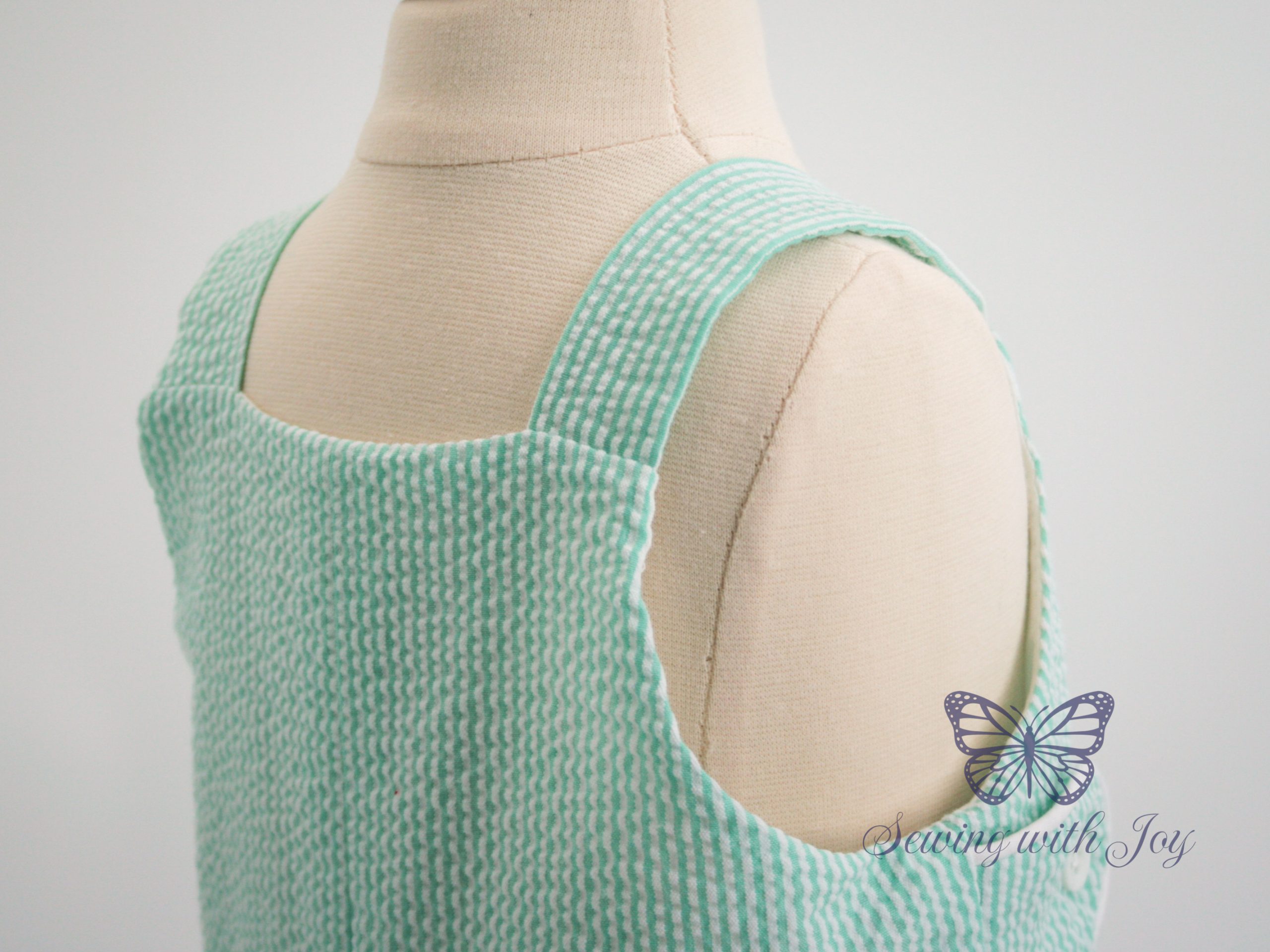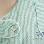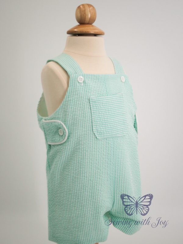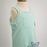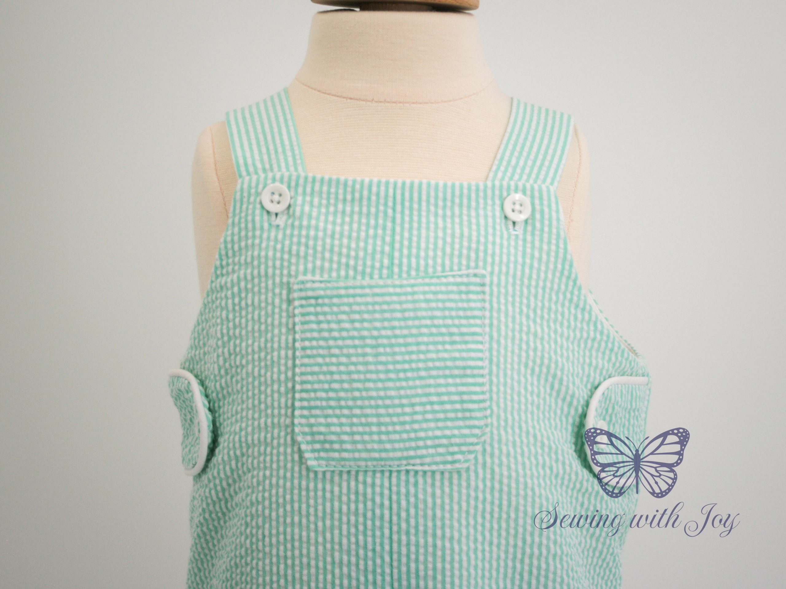 Darling seersucker overalls for your sweet little boy! Classic button tabs and pocket bring these overalls to life. Completely lined with soft rayon, your little one will be comfortable and stylish. For diapers changes, simply undo the shoulder buttons. Dress him up for a photoshoot or a casual day at the zoo.